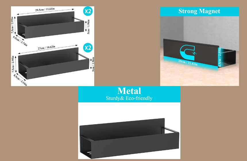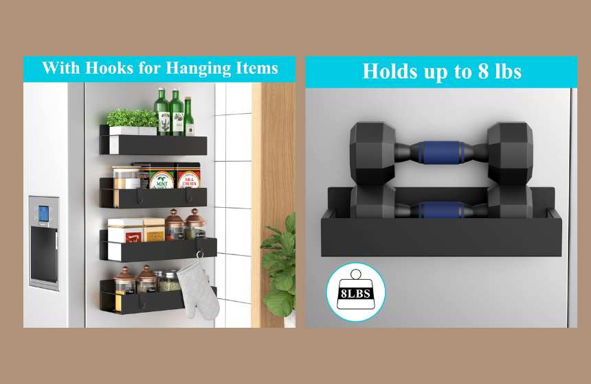 Don’t worry about weight; these shelves feature ultra-strong magnets with an impressive 50-pound weight capacity, ensuring they stay firmly in place without sliding. Crafted from premium rustproof metal, they are built to withstand kitchen heat and humidity while maintaining a modern look.