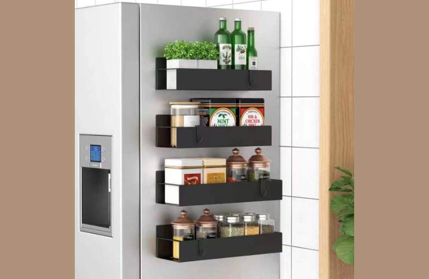 Designed specifically for small kitchens and limited counter space, these sleek black organizers turn the unused side of your refrigerator or oven into a heavy-duty storage solution.