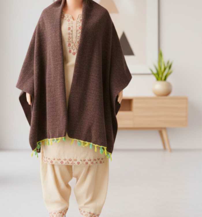 প্রিমিয়াম কোয়ালিটির মখমল বা ভেলভেট সূতা দিয়ে তৈরি আমাদের এই হাতে বোনা শালটি আপনাকে দেবে রাজকীয় অনুভুতি। এটি ওজনে হালকা কিন্তু প্রচণ্ড শীত নিরোধক। এর মোলায়েম বুনন আপনার ত্বকের জন্য অত্যন্ত আরামদায়ক।